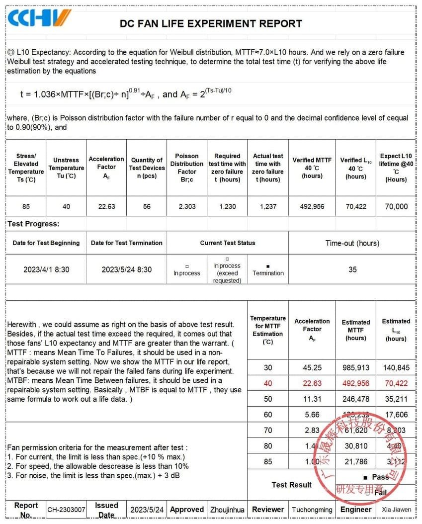3. Check if the selected DC fan supplier can provide fan life experimental report for your interesting or similar models;